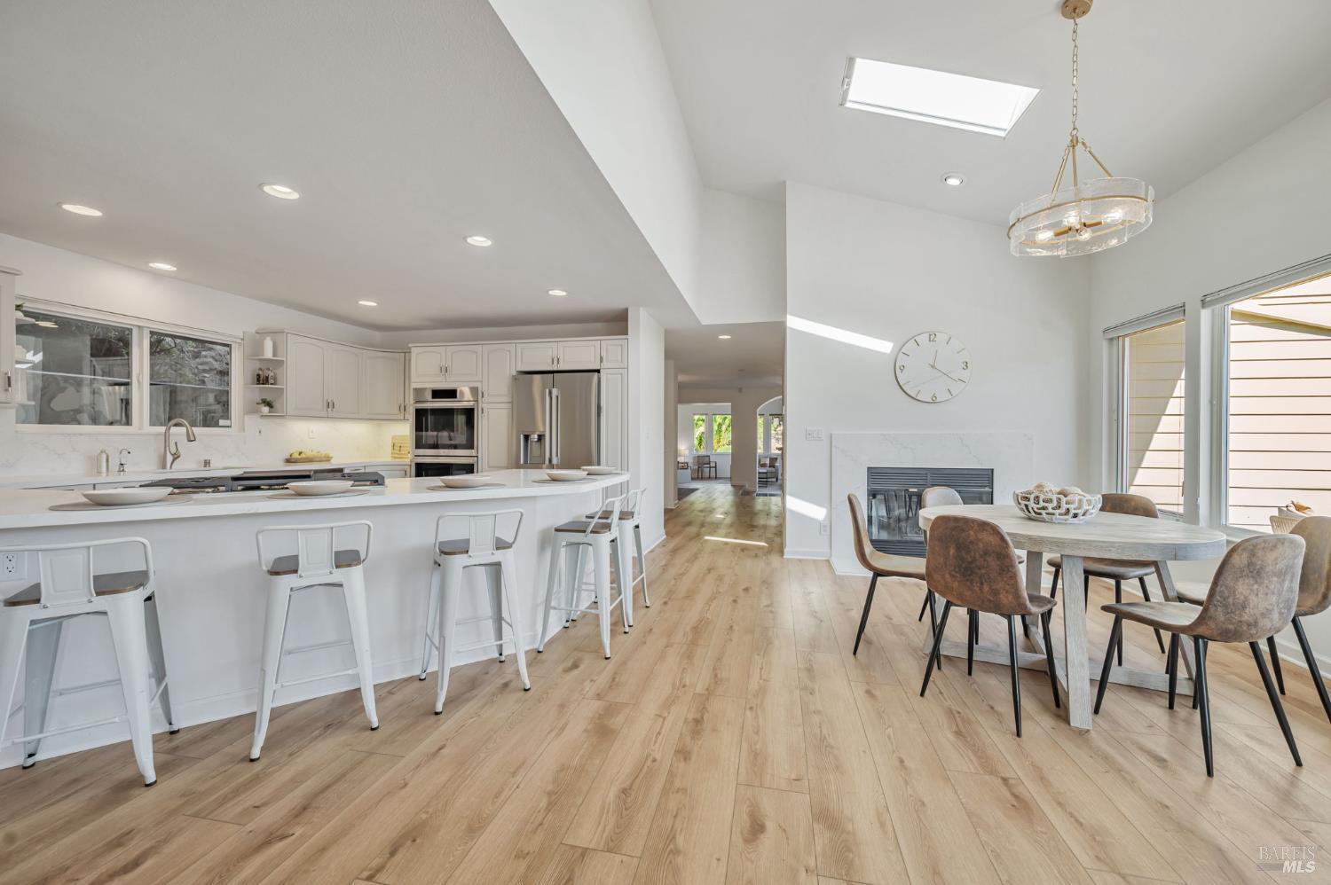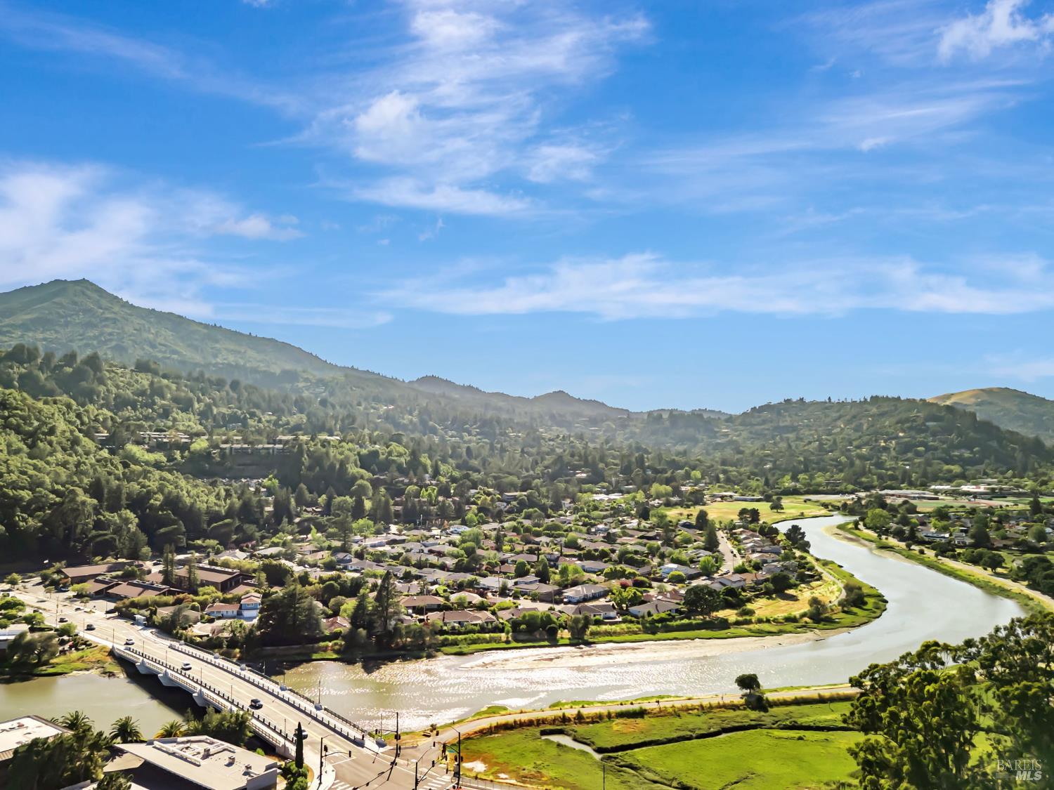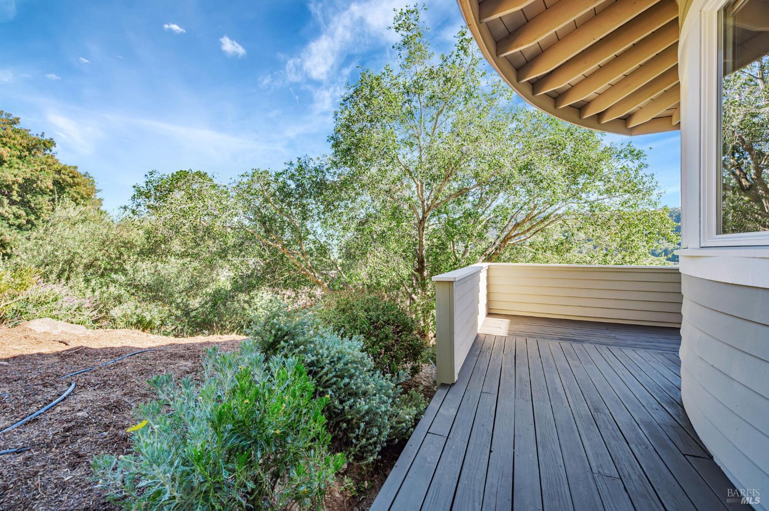 Discover this captivating, custom south-facing home boasting 3,353 square feet of sprawling living space. Situated on a private road just 1 mile from downtown Larkspur and 5 minutes to the ferry, this home offers a unique location that is both private and central. Coveted Kentfield schools, Bay Club, and MarinHealth Center are minutes away. The ground level features a 3-car garage with a bike/workout room and full bath, along with laundry & pantry. The main level is truly expansive, centered around a newly renovated kitchen with sleek quartz counters & high-end stainless steel LG ThinQ smart appliances, including a 5-burner gas cooktop on the dining peninsula, which comfortably seats six. Completing this level is a deck with fabulous Mt. Tam views, a formal dining room, family room, and separate formal living room, full bath, and den or 4th bedroom. The upper level boasts an oversized primary suite with sitting/office area, fireplace, view deck, and luxurious bathroom with his-and-hers walk-in closets, a stand-up shower & tub. Two other good sized bedrooms & full bath complete the upper level. Add'l highlights include a newer roof, solar panels, new luxury plank flooring & A/C on the main level. This home is ideal for those seeking privacy, central location, spaciousness & views!