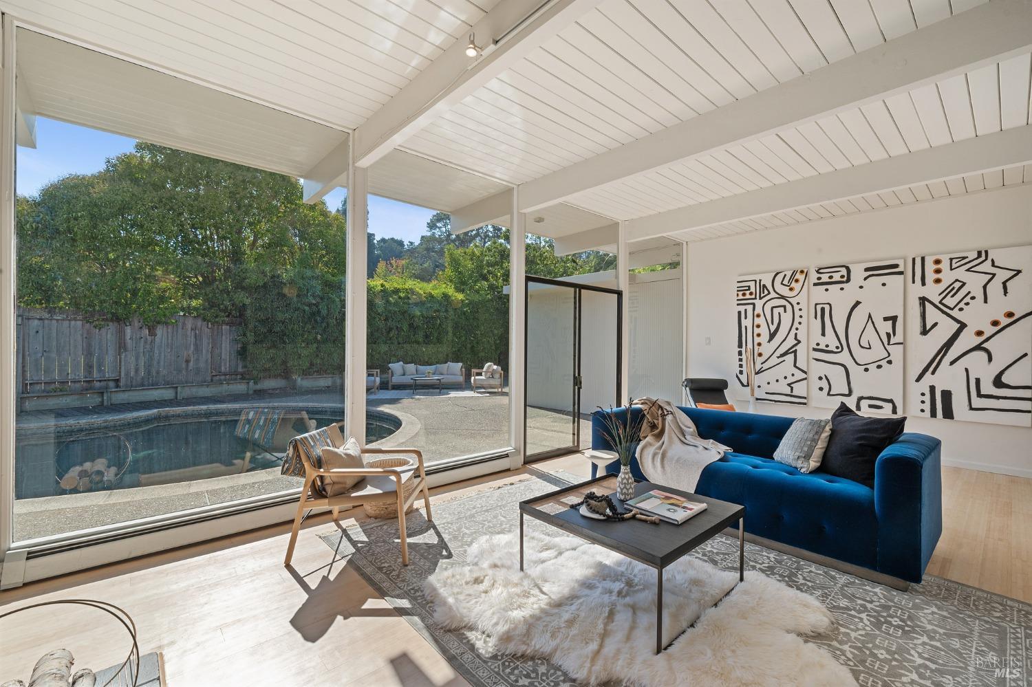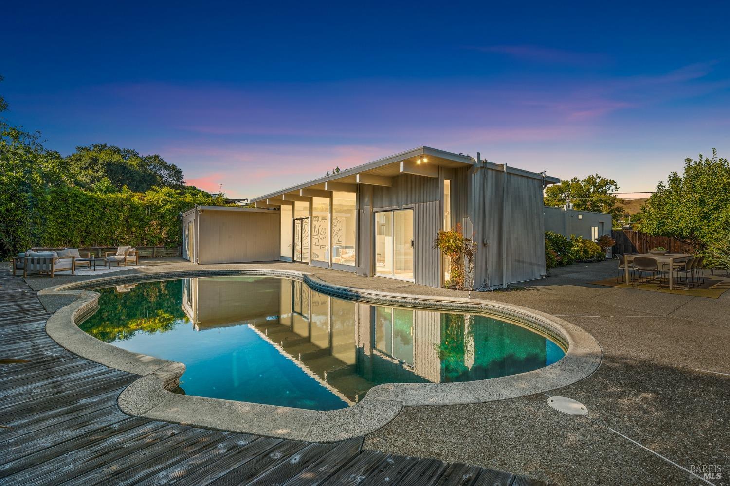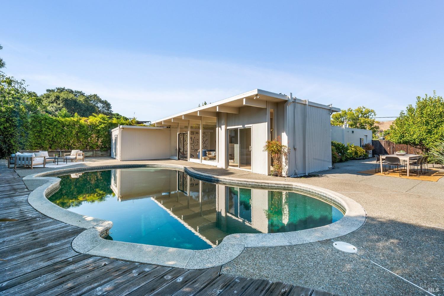 Welcome to an iconic mid-century Eichler home! This inviting property with its 4 bedrooms and 2 bathrooms, and gorgeous backyard oasis, is the idyllic lifestyle home you have been waiting for! Features of the Home: -Great proximity to all Terra Linda has to offer. -Easily walk or bike to neighboring schools, parks, restaurants and shopping. -Open kitchen including stainless steel appliances. -Sun drenched living room featuring a wood burning fireplace and floor to ceiling windows. -Two living rooms each sized to accommodate today's multiple uses; home office, home school, and media/entertainment room. -Primary suite with ensuite bathroom with direct access to pool patio. -Three additional bedrooms generously sized for optimal flexibility. -Fully gated backyard with expansive patio for entertaining. -Sparkling in ground pool. -Two car garage. +/-2,221 SF of living space on an 8,640 SF lot (per county records). -Miller Creek schools (buyer to verify enrollment and availability).